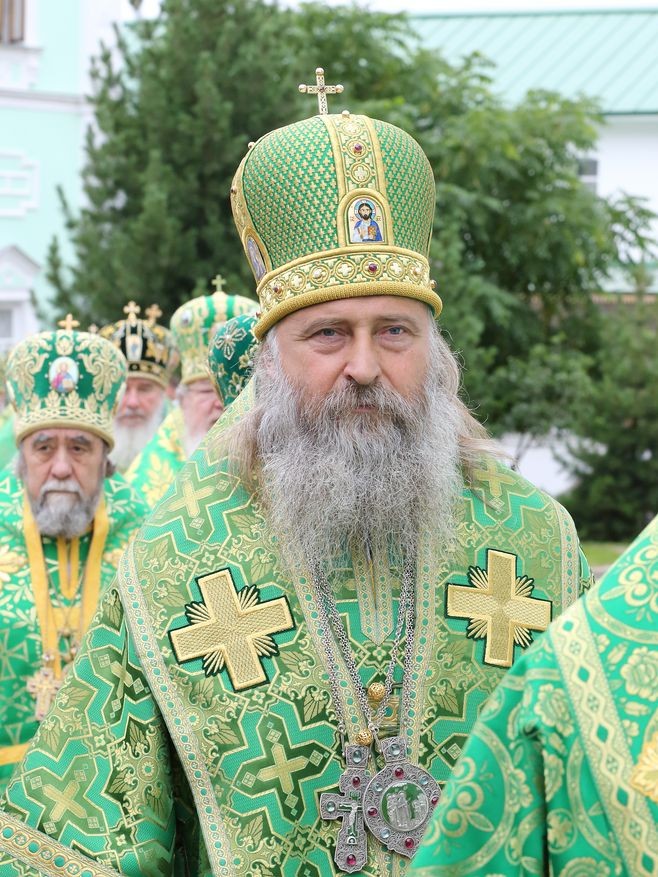 Его Святейшеству сослужил собор архиереев и духовенства Русской Православной Церкви, в том числе постоянные члены Священного Синода — митрополит Черновицкий и Буковинский Онуфрий, Местоблюститель Киевской митрополичьей кафедры; митрополит Крутицкий и Коломенский Ювеналий; митрополит Кишиневский и всея Молдовы Владимир; митрополит Астанайский и Казахстанский Александр, глава Митрополичьего округа Русской Православной Церкви в Республике Казахстан; митрополит Ташкентский и Узбекистанский Викентий, глава Среднеазиатского митрополичьего округа; митрополит Санкт-Петербургский и Ладожский Варсонофий, управляющий делами Московской Патриархии; митрополит Минский и Слуцкий Павел, Патриарший экзарх всея Беларуси; митрополит Волоколамский Иларион, председатель Отдела внешних церковных связей; а также митрополит Ростовский и Новочеркасский Меркурий, председатель Организационного комитета Русской Православной Церкви по проведению празднования 700-летия со дня рождения преподобного Сергия Радонежского.