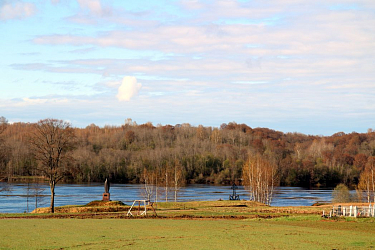 Остров, упоминаемый в названии обители, а затем и храма, располагается в двух километрах, ниже по течению, от села Хопылева и современных храмов, площадь его сейчас 9 га, а в то время, когда там располагался монастырь, был он вдвое больше. Как видим, издревле остров именовался «Богоявленским», возможно, еще до появления там монахов.