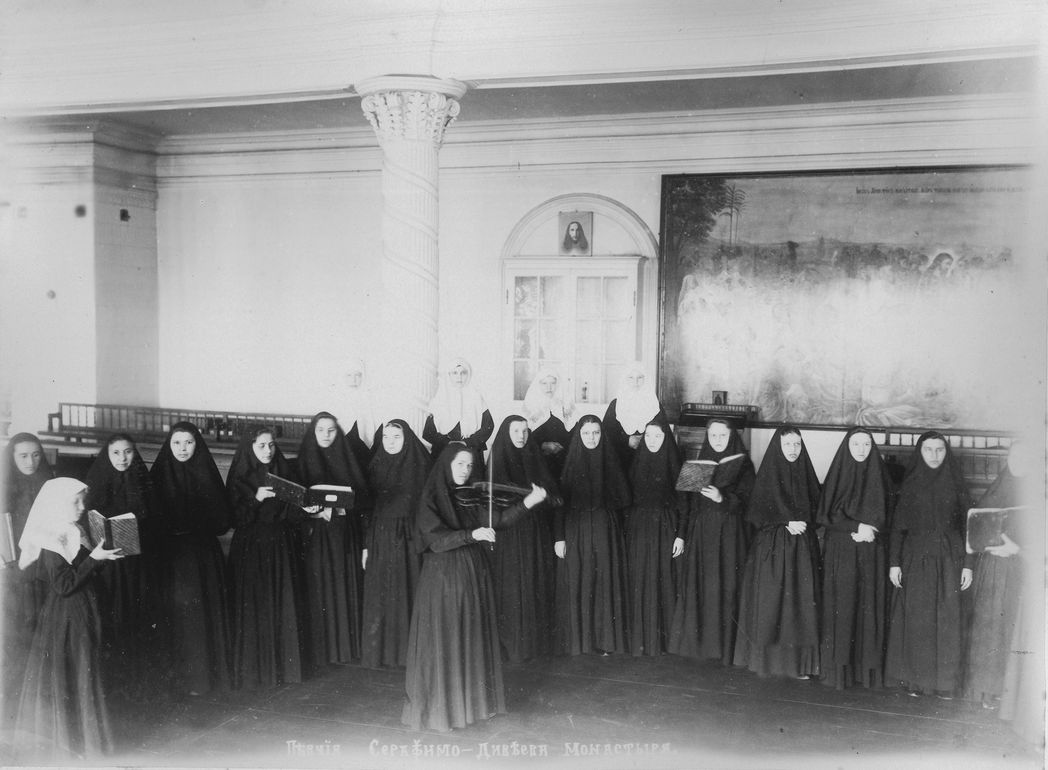 Спевки проводились очень часто. Способных учили играть на скрипке и фисгармонии. Летом при большом стечении богомольцев обедни и всенощные служились в нескольких церквях, а пели всегда на два хора. Службы были прекрасные. Певчие читали по усопшим сестрам, пели молебны и панихиды по пустынкам, так что в мастерских им мало приходилось работать. В воскресенье вечером обязательно служили акафист преподобному Серафиму нараспев вместо второй кафизмы на заутрени. Некоторые видели, как во время пения акафиста преподобный покрывал певчих своей мантией.