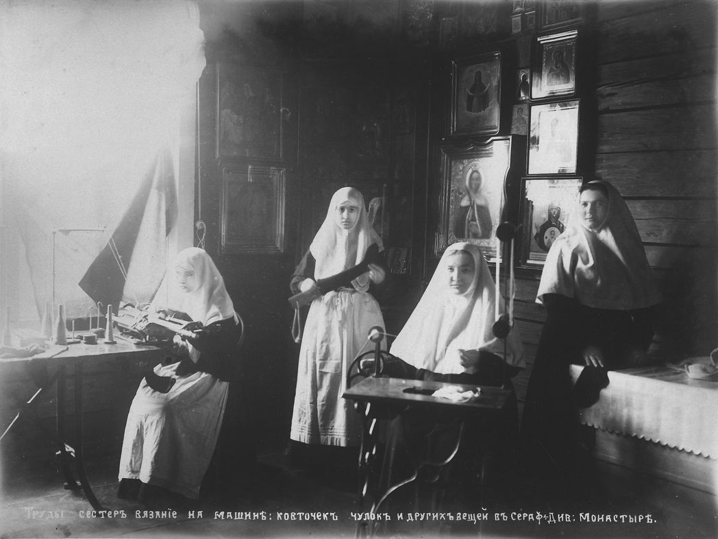 В рукодельном послушании сестры занимались вышивкой. По заказу вышивали золотом, шелками, гладью по батисту и полотну. В свиточном изготовляли свитки (рубашки) для саровской братии, до 400 штук ежегодно. В портняжной шили одежду для сестер, портных было несколько. В ризной изготовляли и чинили ризы, делали цветы, убирали иконы и плели русское кружево на коклюшках. В вязальном вязали на машинах. В манатейном пряли из русской овечьей шерсти и ткали манатею ‒ тонкую шерстяную ткань, из которой шили ряски и мантии. Специально выделенные сестры шили апостольники и камилавки.