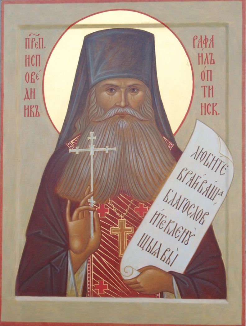 Источник: Сердцем я с вами… К 60-летию преставления преподобного Рафаила Оптинского, исповедника / [текст. мон. Евфимии (Аксаментовой)]. – Козельск: Введенский ставропигиальный мужской монастырь Оптина Пустынь, 2017.