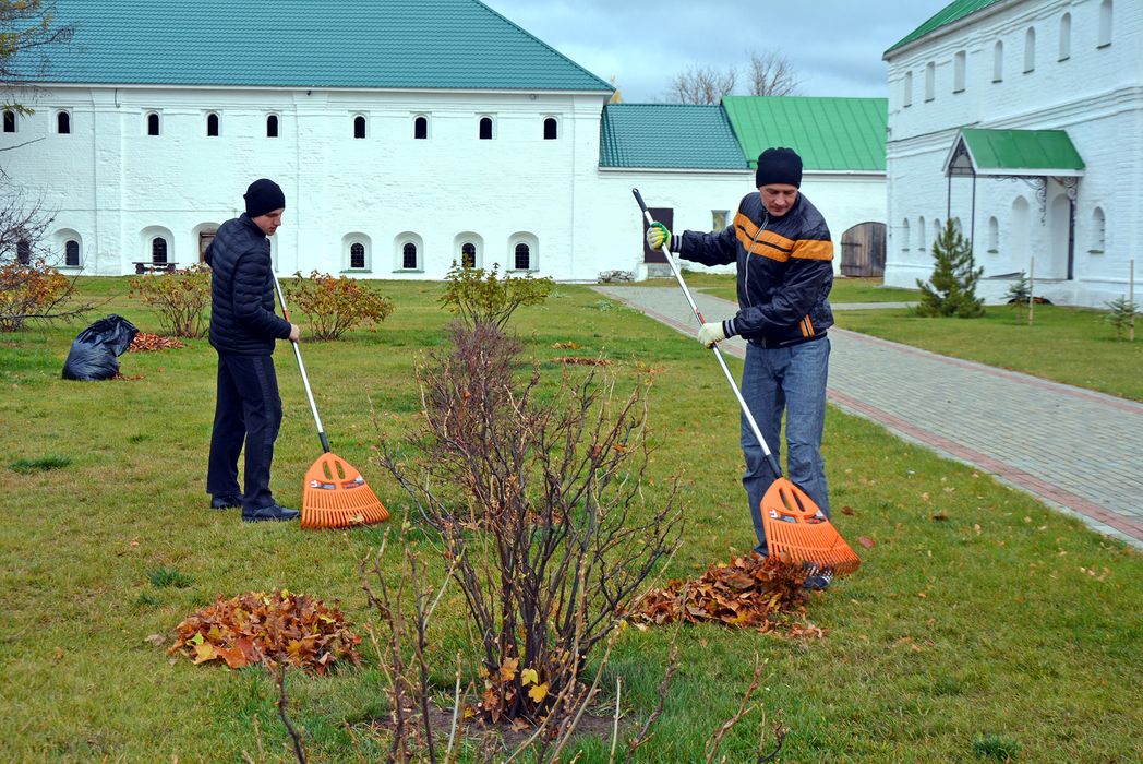 По прибытии молодые люди разместились в кельях труднического дома и сразу приступили к работе. Юношей направили в сад ухаживать за плодовыми деревьями и убирать с газона листву. Часть девушек остались прибираться в трудническом доме: мыть окна и полы, протирать пыль в кельях обоих этажей. Других, постарше, направили в архиерейский дом. Завершив уборку, девушки присоединились к садовым работам.