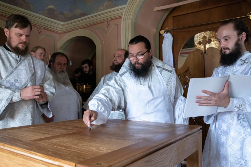 Его Высокопреосвященству сослужили благочинный Петропавловского округа архимандрит Алексий (Вылажанин), клирики Патриаршего подворья храмов бывшего Николо-Перервинского монастыря настоятель протоиерей Владимир Чувикин, священник Фома Акинфин, клирик Патриаршего подворья Успенского Пюхтицкого ставропигиального женского монастыря в г. Когалыме (Ханты-Мансийский автономный округ) священник Иоанн Савицкий, клирик храма Тихвинской иконы Божией Матери в Алексеевском протодиакон Василий Куфлик, клирики Патриаршего подворья храмов бывшего Николо-Перервинского монастыря протодиакон Сергий Шевелкин и диакон Николай Кузнецов.