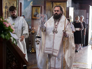 В Георгиевском храме обители Его Преосвященству сослужили руководитель Административного секретариата Пятигорской епархии иерей Илия Яковенко, духовенство обители и диакон Петр Копач.