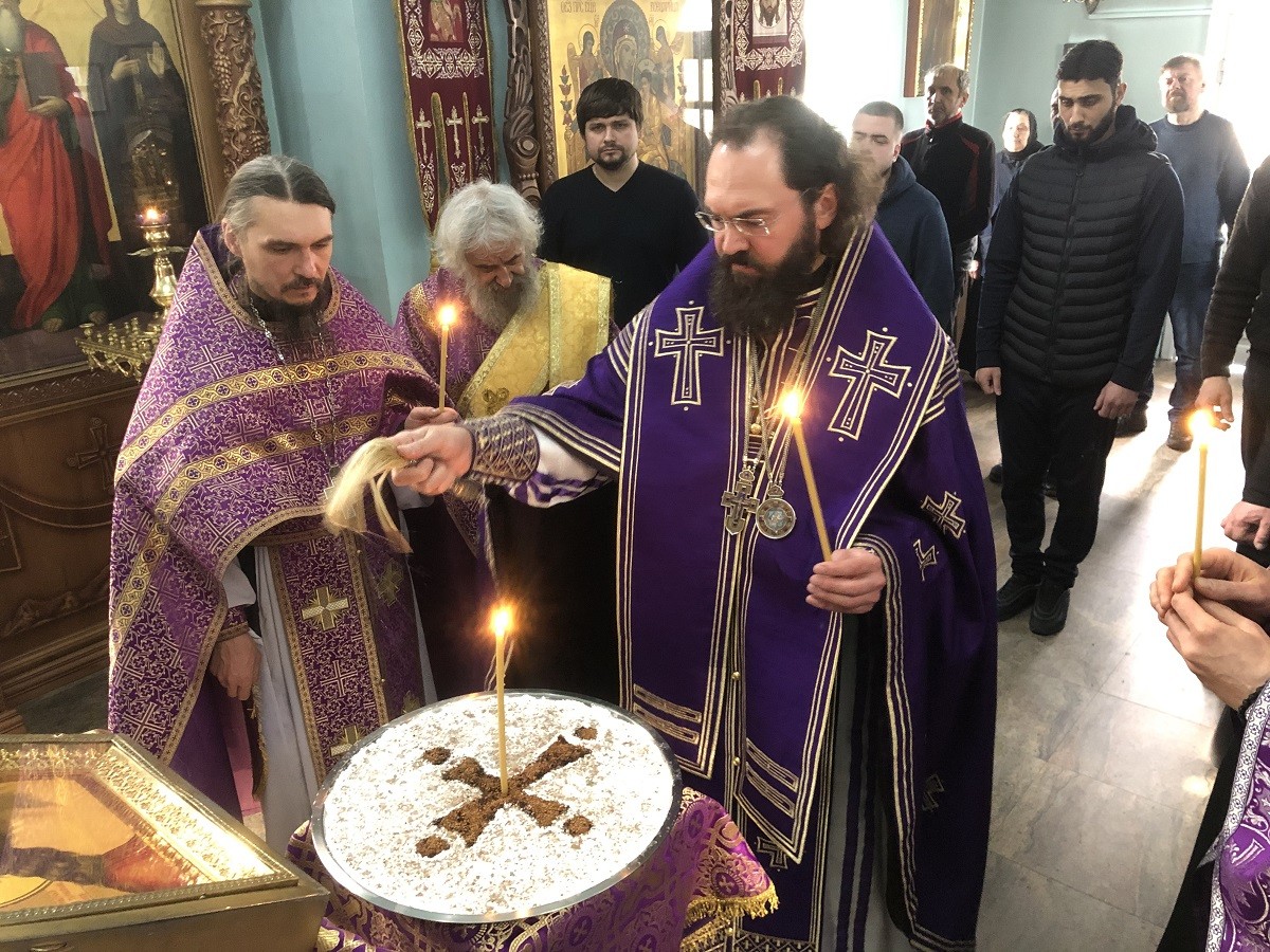 17 и 19 марта 2021 года, в среду и пятницу первой седмицы Великого поста,священноархимандрит Успенского Второафонского Бештаугорского мужского монастыря архиепископ Пятигорский и Черкесский Феофилакт совершил Литургии Преждеосвященных Даров в Георгиевском храме обители.