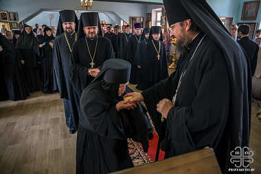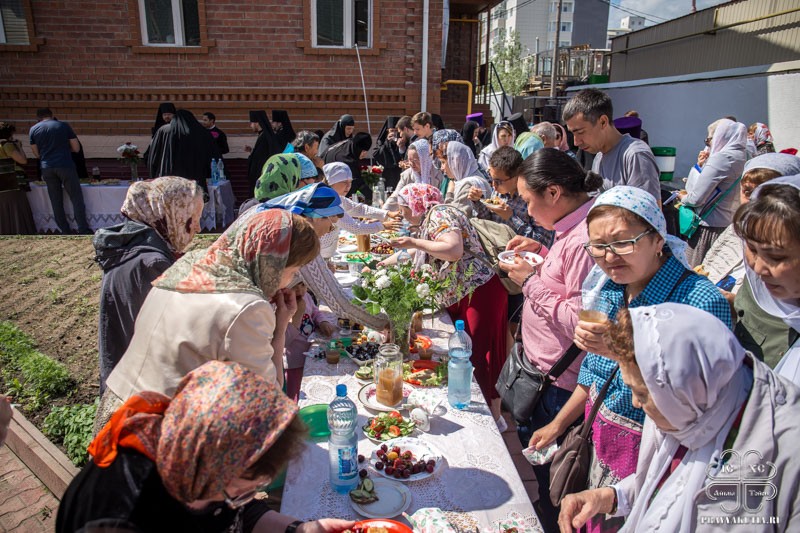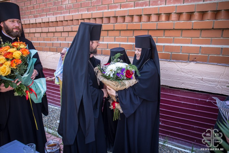 По окончании литургии Его Высокопреосвященство поздравил настоятельницу обители игумению Архелаю (Биянову) с днем тезоименитства, после чего продолжил общение с насельницами монастыря и прихожанами за трапезой под открытым небом.