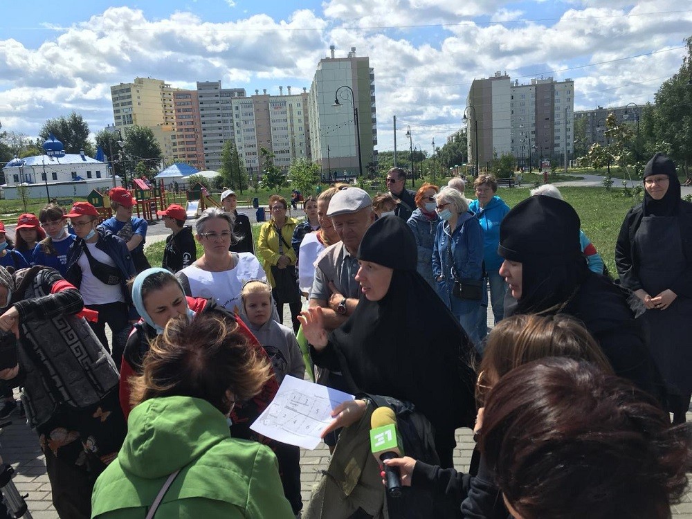 В полдень возле женской обители собрались представители самых разных организаций Ленинского района, жители ближайших домов, прихожане и школьники. В рабочей одежде, с лопатами и граблями.