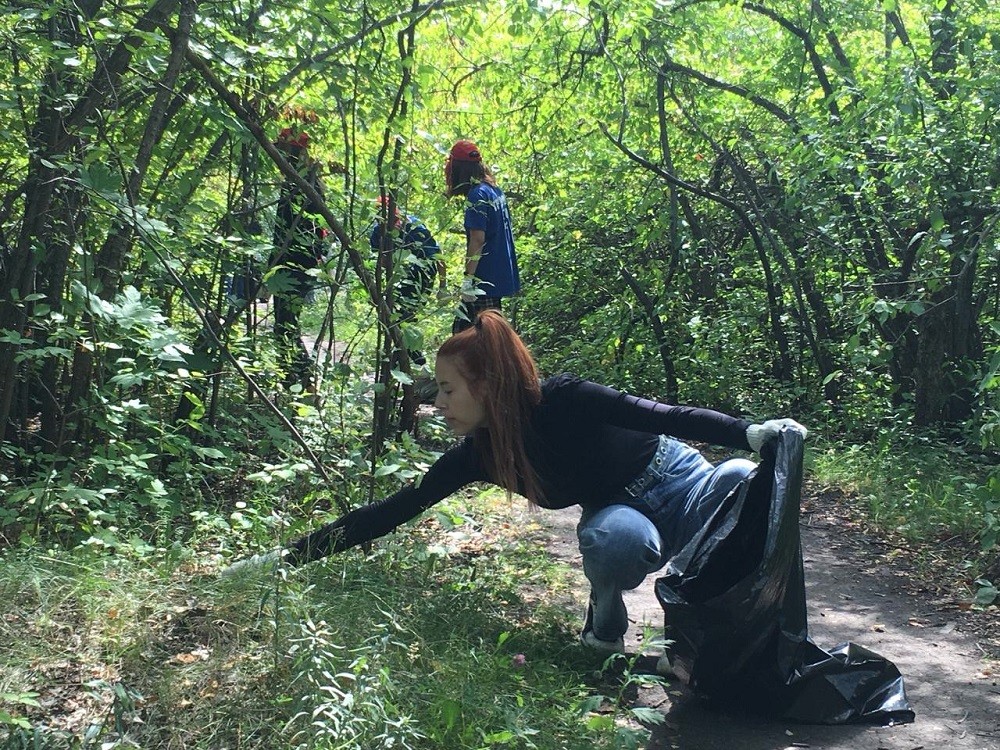 Всем добровольным помощникам выдали перчатки и по два мешка для раздельного сбора мусора. Отходы распределяли по разным контейнерам. Передохнуть работники могли возле столика с чаем и сладостями.