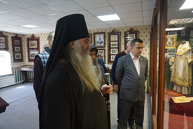 Архимандрит Тихон подробно рассказал собравшимся членам Императорского православного палестинского общества об истории музея, его экспозиции, подробно остановившись на выставке «Красный террор в Нижегородской епархии 1917–1918 гг.».
