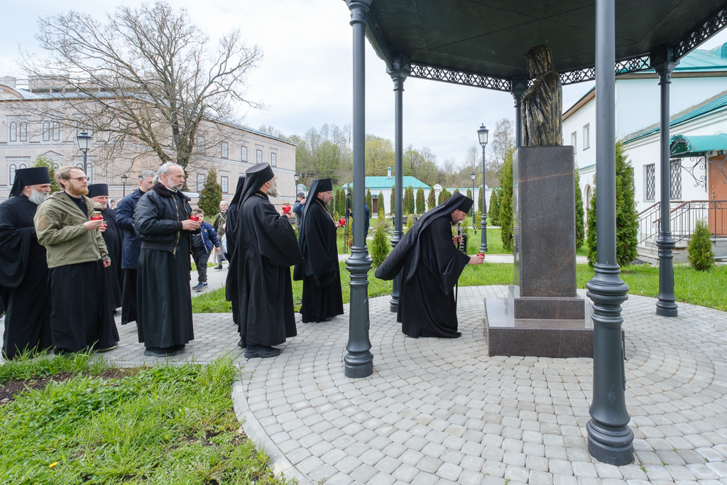 Насельники и прихожане совершили молитвенное шествие с зажженными свечами от храма к памятнику святому Александру Невскому, установленному на территории монастыря. Здесь еще раз прозвучали молитвы о потрудившихся ради победного дня.