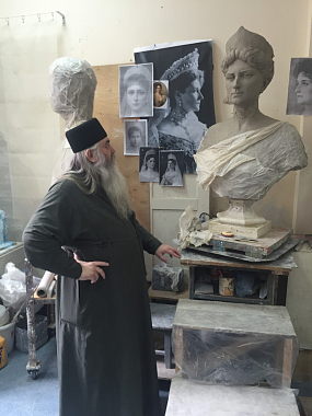 Игумен Вознесенского Печерского монастыря архимандрит Тихон (Затёкин) побывал в мастерской скульптора и внес свои замечания.
