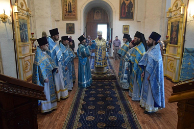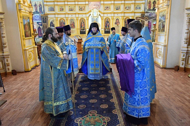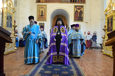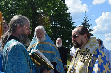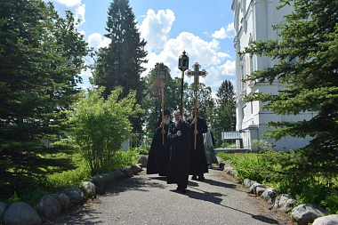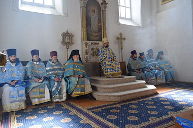 Его Преосвященству сослужили: благочинный церквей Чухломского района протоиерей Александр Смирнов, и. о. настоятеля обители иеромонах Михаил (Позднев), благочинный церквей Парфеньевского округа протоиерей Виталий Воскресенский, клирик Преображенского собора г. Солигалича протоиерей Николай Андреянов, настоятель храма прп. Серафима Саровского с. Палкино протоиерей Сергий Кружнов, настоятель храма свт. Николая с. Николо-Полома протоиерей Александр Иванов, настоятель храма Воскресения Христова поселка Судай иерей Максим Трофимов, клирик обители иеромонах Авраамий (Авдеев).