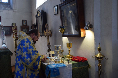 За Литургией молились братия монастыря, а также паломники, прибывшие на праздничное богослужение.
