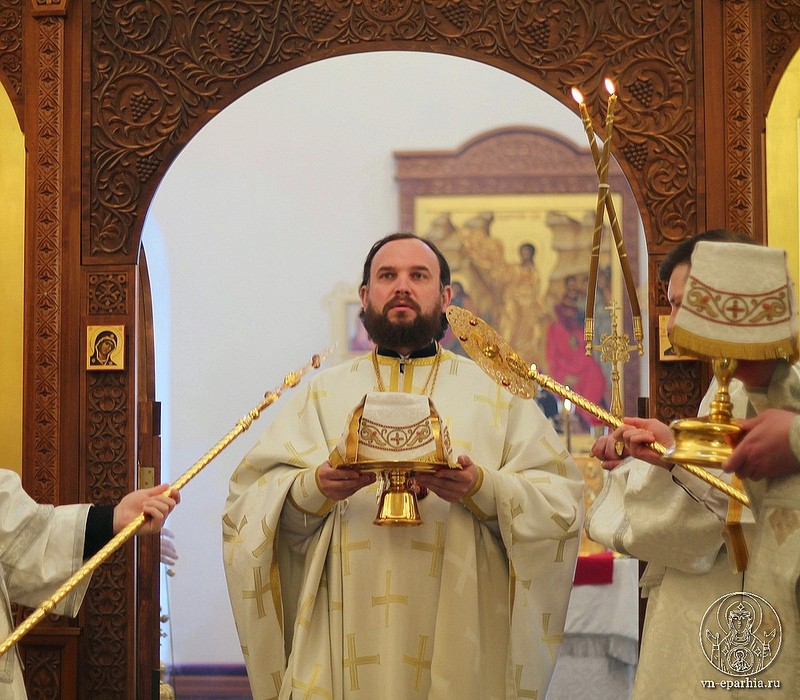 После чтения Евангелия проповедь произнес студент 3 курса духовного училища Илия Соколов.