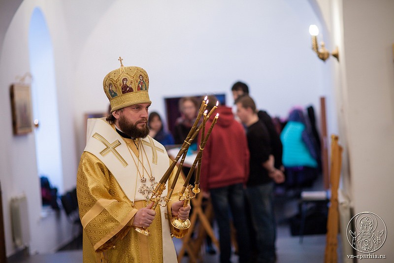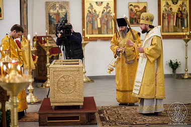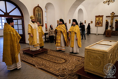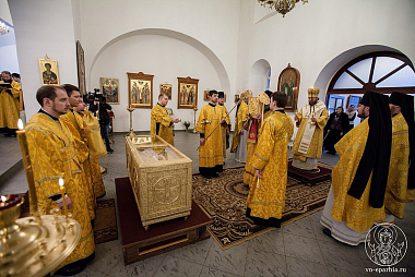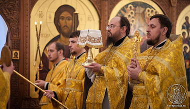 Накануне вечером Его Преосвященство возглавил всенощное бдение в этом же храме обители.
