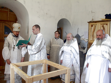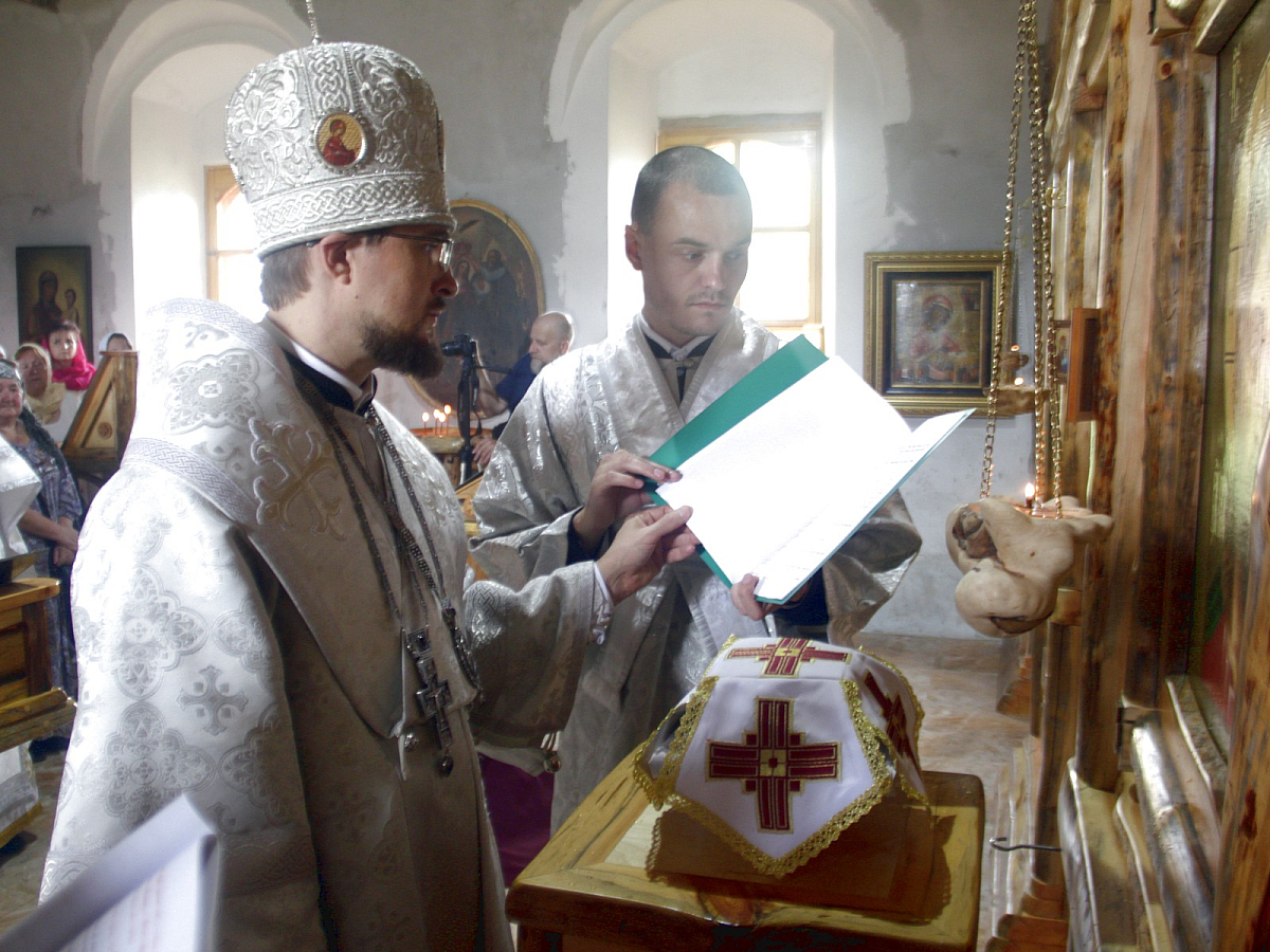 Преосвященнейшему Флавиану сослужили настоятель Филиппо-Ирапского Красноборского мужского монастыря, игумен Иов (Чернышев); настоятель Евфросино-Синозерского архиерейского подворья, иеромонах Феодосий (Белов); эконом монастыря, иеромонах Геронтий (Чудневич); благочинный Южного благочиния, протоиерей Александр Краев.