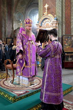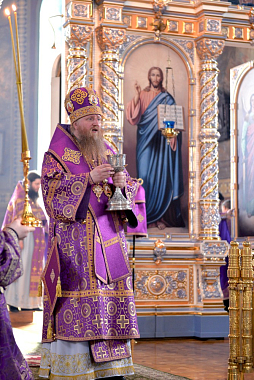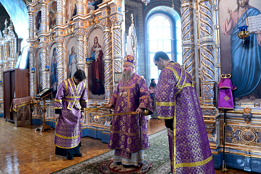 Его Преосвященству сослужили: благочинный монастыря архимандрит Трифон (Голубых), духовенство обители.