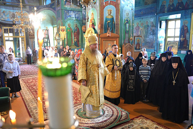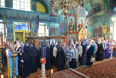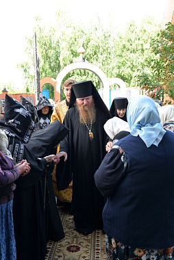 По окончании литургии владыка Евфимий обратился к насельницам и паломникам обители с архипастырским словом, в котором напомнил житие святителя Феофана и значимость трудов подвижника для духовного преуспеяния человека, желающего жить по заповедям Божиим.