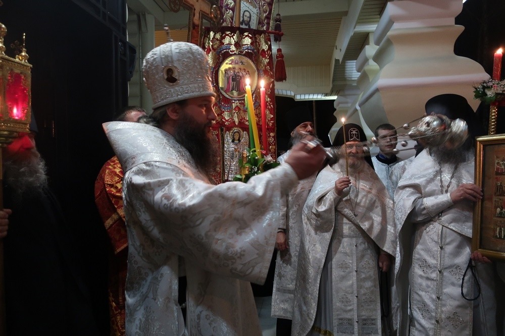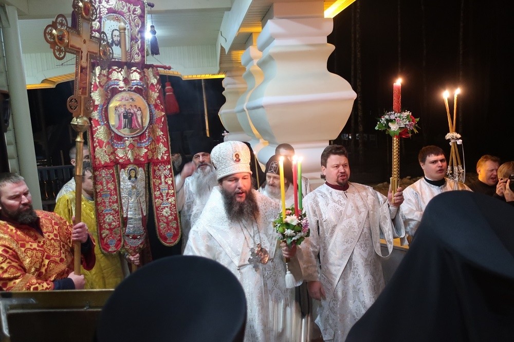 В ночь с 7 на 8 апреля 2018 года, в праздник Светлого Христова Воскресения, епископ Среднеуральский Евгений, викарий Екатеринбургской епархии, совершил праздничное пасхальное богослужение в Державном храме монастыря Святых Царственных страстотерпцев в урочище Ганина Яма.