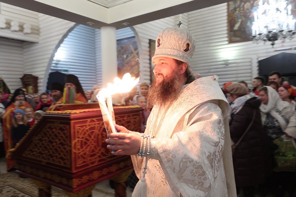 В ходе праздничного богослужения состоялось принесение в храм частицы Благодатного огня, который доставили со Святой Земли в Екатеринбург паломники в составе епархиальной делегации. Все присутствующие в храме смогли возжечь от него свечи и лампады.