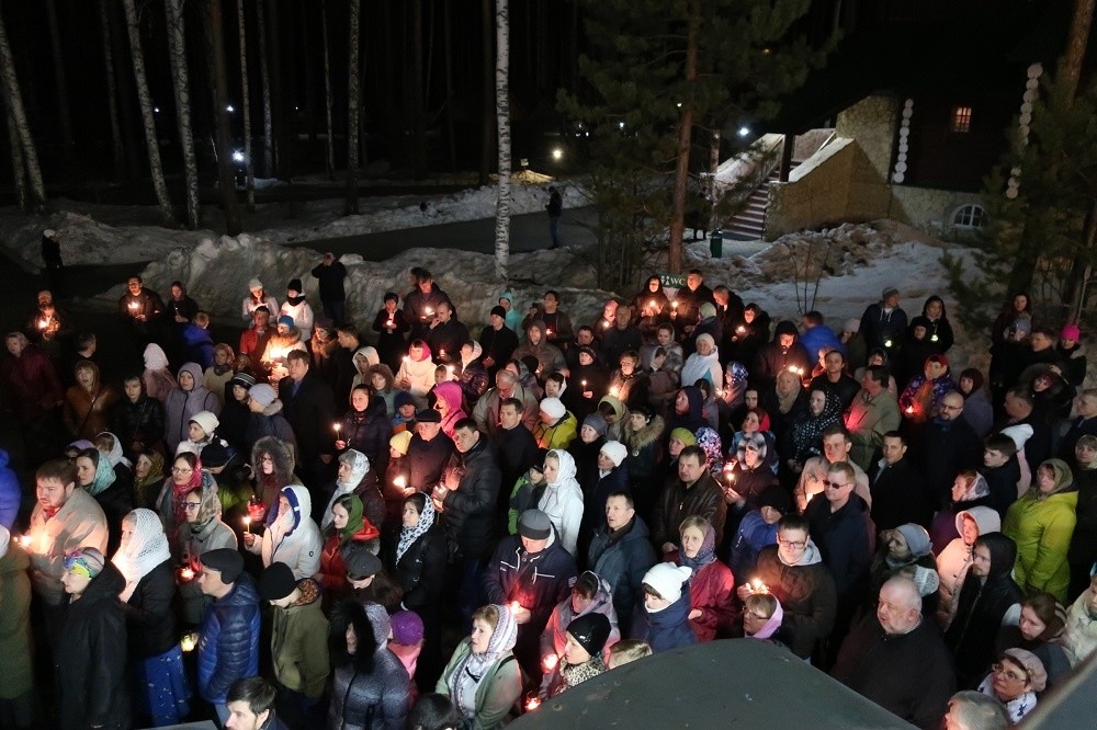 Храм Иконы Божией Матери «Державная» вместил свыше тысячи паломников, приехавших, чтобы встретить праздник праздников на особо почитаемом уральцами месте – там, где слова пасхального кондака «Аще и во гроб снизшел еси, Безсмертне, но адову разрушил еси силу, и воскресл еси, яко Победитель» звучат особенно остро.