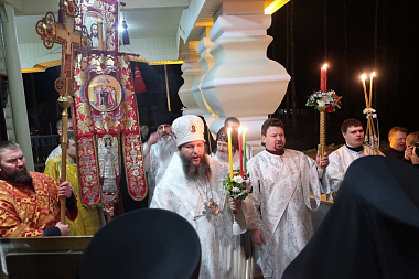 За богослужением епископ Евгений зачитал Слово свт. Иоанна Златоустого, а затем огласил Пасхальные послания Святейшего Патриарха Московского и всея Руси Кирилла и митрополита Екатеринбургского и Верхотурского Кирилла и поздравил от себя всех молящихся с Пасхой.