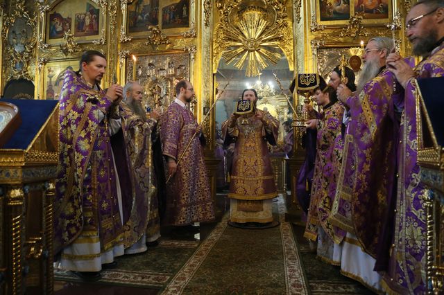По окончании Божественной литургии было совершено поклонение Животворящему Кресту.
