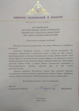 15 июля 2019 года епископ Скопинский и Шацкий Феодорит совершил Божественную литургию в Успенском Вышенском женском монастыре п. Выша Шацкого района.