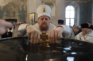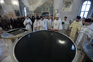 По заамвонной молитве Его Преосвященство совершил чин великого освящения воды.