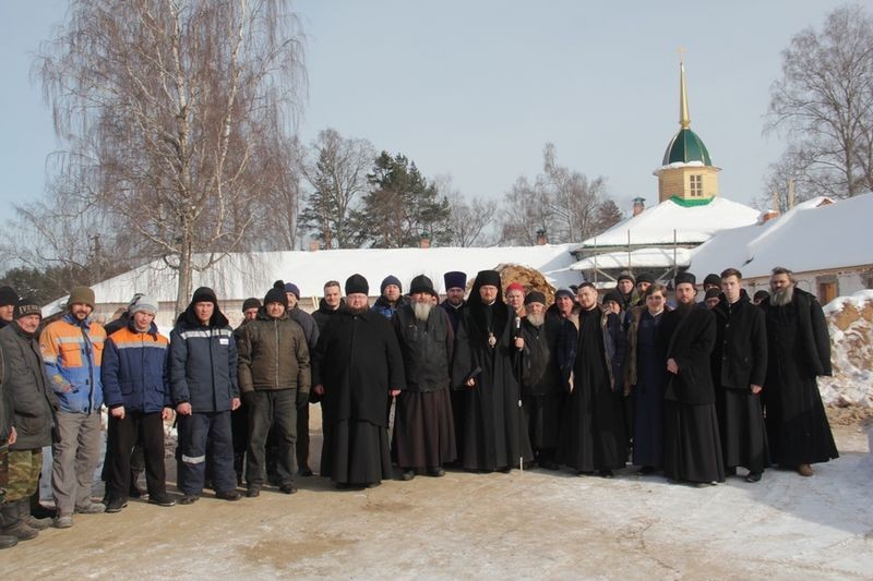 Делегацию встретил настоятель монастыря иеромонах Геронтий (Чудневич), который показал правящему архиерею восстанавливаемый храм в честь Иконы Божией Матери «Казанская», строящиеся и действующие монашеские келии, котельную монастыря, трапезную и скотный двор.
