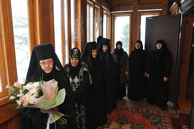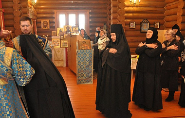 По окончании Литургии владыка Флавиан поблагодарил настоятельницу монастыря игумению Кириллу (Червову) с сестрами, духовенство и прихожан храма и поздравил с праздником.