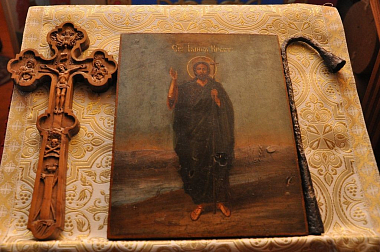 · икону Предтечи и Крестителя Господня Иоанна. На обороте иконы – собственноручная надпись матушки Таисии (Солоповой): «В благословение от игумении Таисии на пострижение послушницы Клавдии в монастырь»;
