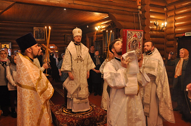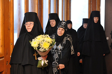 Преосвященного владыку встречали настоятельница монастыря игумения Кирилла (Червова) и насельницы обители.