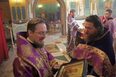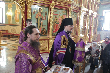 11 марта 2018 года, в Неделю 3-ю Великого поста, Крестопоклонную, в кафедральном соборе Преподобных Афанасия и Феодосия Череповецких епископ Череповецкий и Белозерский Флавиан возглавил Божественную литургию.