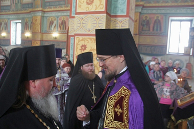 По окончании Литургии епископ Флавиан обратился к верующим с архипастырским словом, в котором рассказал об истории возрождения Филиппо-Ирапской обители.