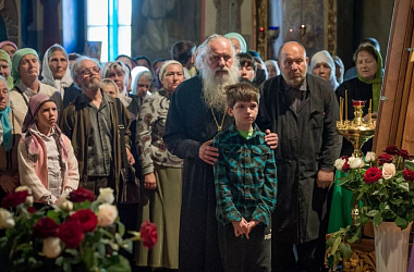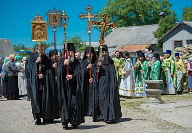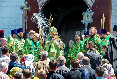 По окончании Литургии в честь престольного праздника духовенством был совершен крестный ход вокруг храма, после чего владыка Герман обратился к собравшимся с архипастырским словом.