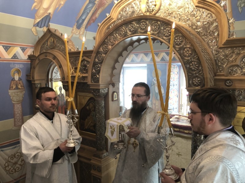 В богослужении участвовали наместник Свято-Троицкого мужского монастыря архимандрит Василий (Паскье) и казначей обители игумен Тихон (Першев).