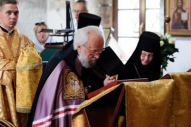 За Литургией молились настоятельница Петропавловского женского монастыря игумения Серафима (Ващинская) с сестрами, прихожане обители и паломники.