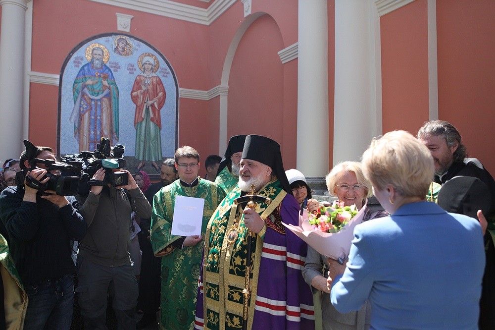 По окончании Божественной литургии в Свято-Троицком соборе братия обители прошла крестным ходом вокруг монастырского каре до южных ворот, где наместник освятил икону.