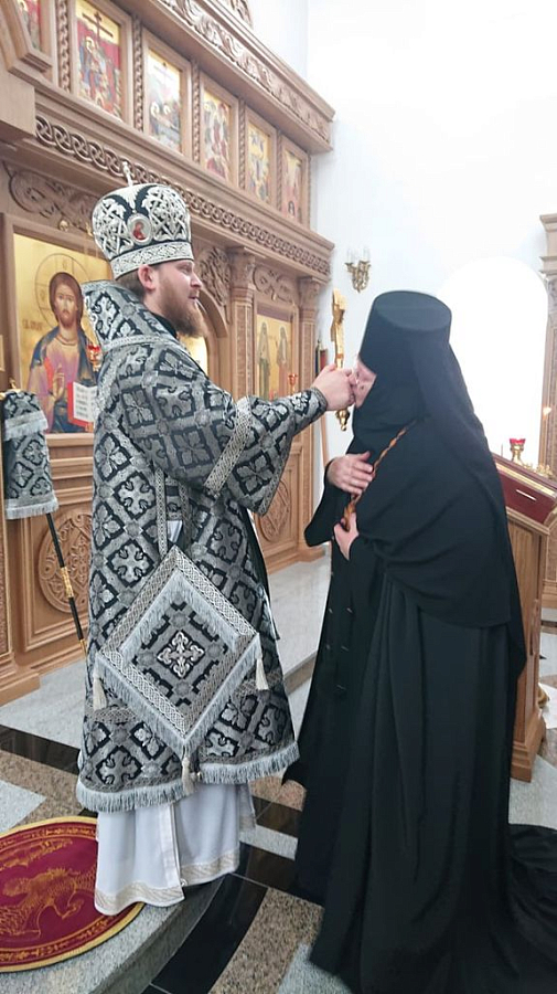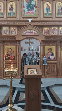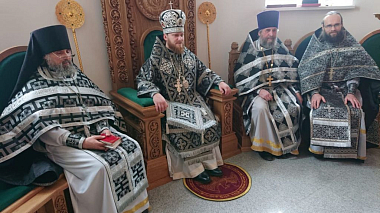 В храме во имя прмц. Елисаветы Феодоровны Его Преосвященству сослужили: благочинный Артемовского округа протоиерей Николай Трушников, клирик женского монастыря иерей Алексей Власов и клирик храма во имя пророка Илии г. Артемовского иеромонах Антоний (Юрьев).