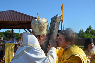 Его Преосвященству сослужили иеромонах Тихон (Пронников), благочинный Чаплыгинского церковного округа иерей Артемий Мишин и клирики обители.