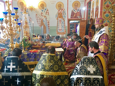 По окончании богослужения Его Преосвященство отслужил панихиду по погибшим 25 марта в результате пожара в торговом центре «Зимняя вишня» в Кемерове.