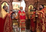 За Литургией Его Преосвященству сослужили: насельники обители игумены Антоний (Гутник) и Антоний (Кузнецов), иеромонахи Игнатий (Стадников), Кирилл (Шведов), Николай (Бойко) и Мефодий (Каратаев), а также протоиерей Михаил Николаев и иерей Михаил Ломакин.