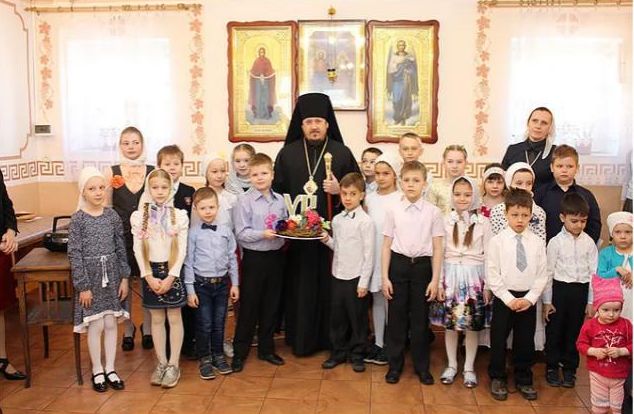 14 апреля 2018 года епископ Ливенский и Малоархангельский Нектарий посетил пасхальный утренник воспитанников Воскресной школы Св. Успенского мужского монастыря г. Орла.