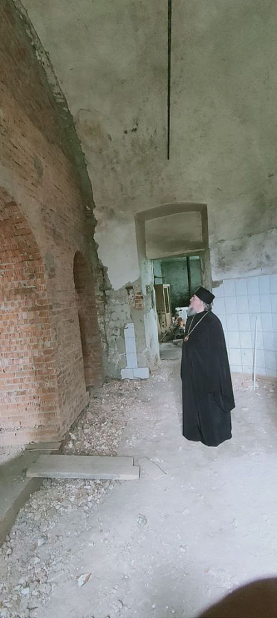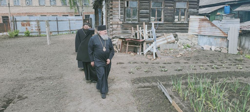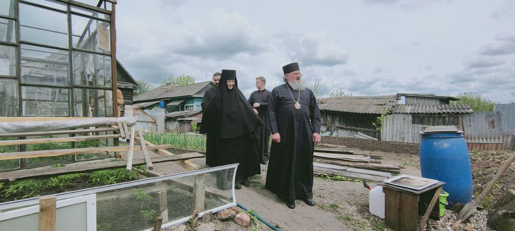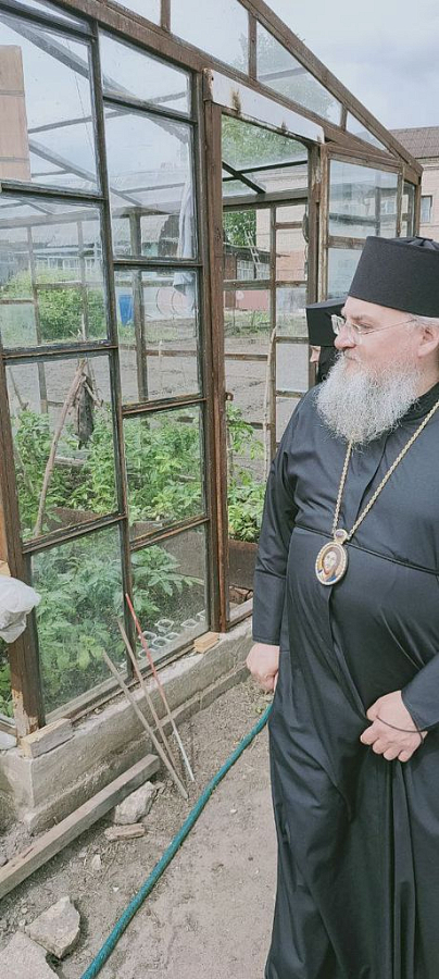 Старшая сестра обители монахиня Анастасия (Дремина) познакомила владыку с начавшимися реставрационными работами в центральном алтаре Воскресенского храма, благоустройством территории, первыми успешными работами на монастырском огороде.