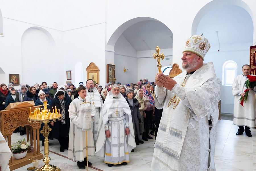 После сугубой ектении епископ Игнатий вознес молитву о восстановлении мира на нашей земле. По запричастном стихе духовник обители протоиерей Николай Войтов произнес проповедь.