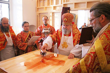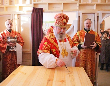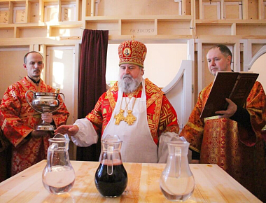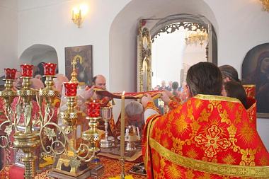 По освящении престола Преосвященный епископ Сергий возглавил Божественную литургию свт. Иоанна Златоустого.