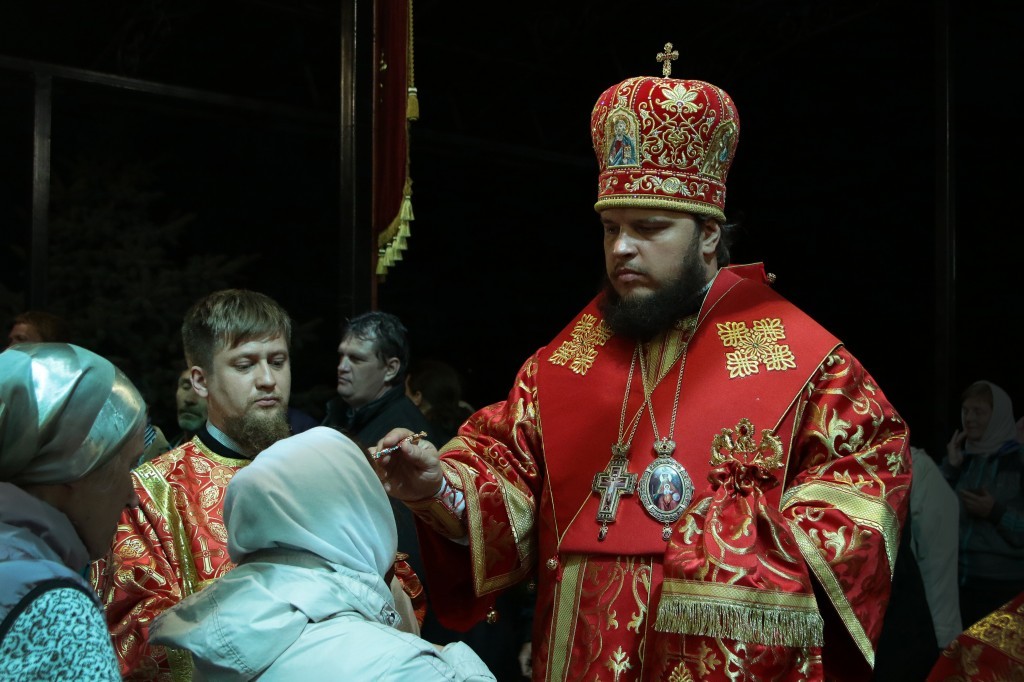 После Евангельского чтения за богослужением было совершено помазание верующих, прибывших разделить молитву с архипастырем и прославить святых Царственных страстотерпцев. Во время помазания молящимся были подарены иконы святых Царственных страстотерпцев.