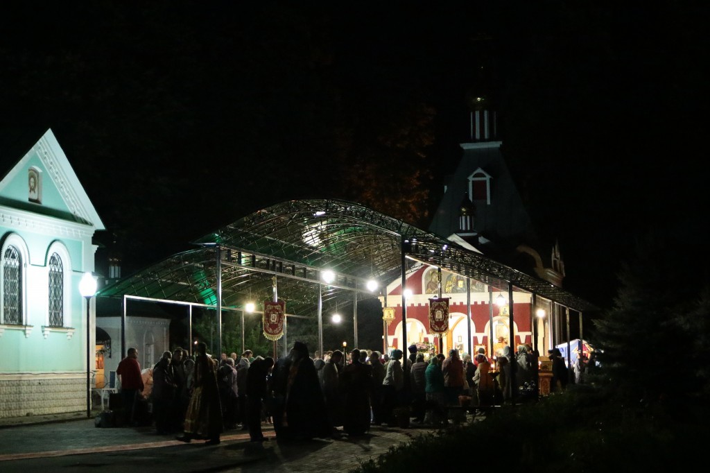 Богослужебные песнопения исполнил хор обители под управлением иеромонаха Дионисия (Тарасова).