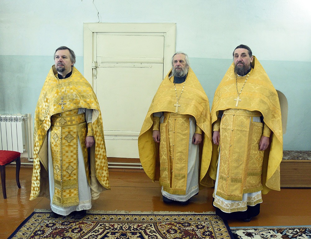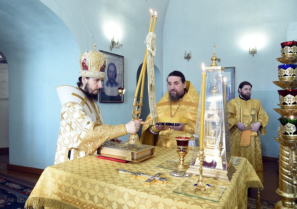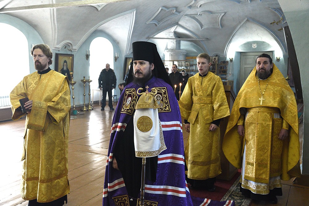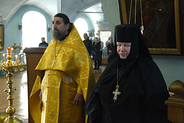 Архипастырю сослужили клирики монастыря протоиереи Андрей Треумов, старший священник обители; Владимир Щанов и Игорь Меняйлов.